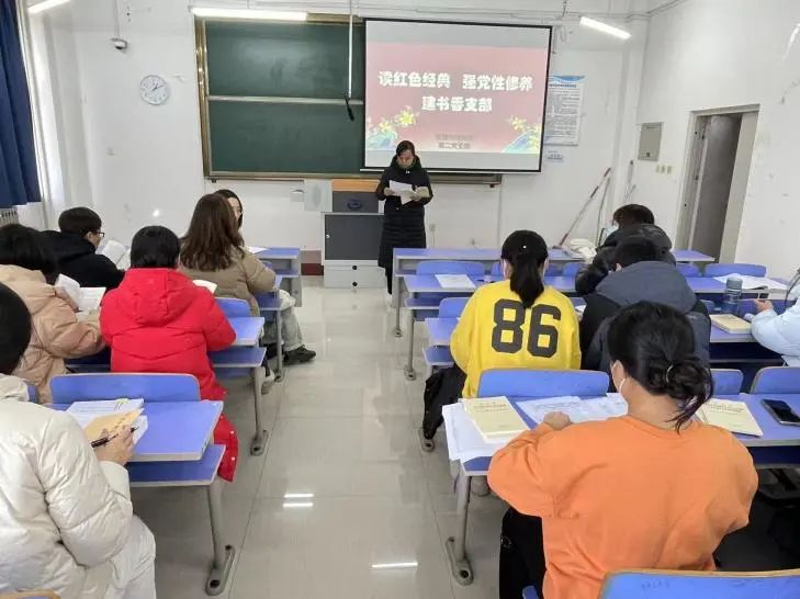 为进一步深入学习贯彻习近平新时代中国特色社会主义思想,提高党员的党性修养,端正党风,促进党员的岗位创新能力,2023年12月6日,管理与传媒系第二党支部召开了“读红色经典,强党性修养,建书香支部”主题教育集体学习,本次学习的内容是《论党的自我革命》,由党支部书记王嘉冰主持。党支部书记王嘉冰、组织委员韩丽、宣传委员赵艳新分别领读了《坚定不移全面从严治党,深入推进新时代党的建设新的伟大工程》《认真学......