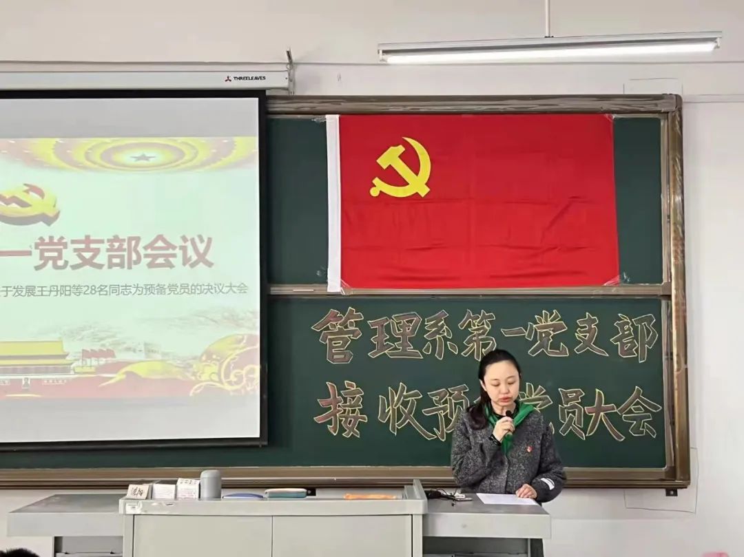 为进一步加强党支部组织建设,按照党员发展细则,严格党员发展程序,切实提高党员发展质量,提升组织凝聚力,吸收更多优秀青年力量加入到党员队伍中。9428cn太阳集团古天乐管理系第一党支部于2021年12月9日中午12:00在第二教学楼303教室召开管理系第一党支部接收预备党员大会,此次会议由管理系党总支第一党支部书记蒋明儒主持,支部全体党员同志、预备党员及发展对象参加此次会议。...