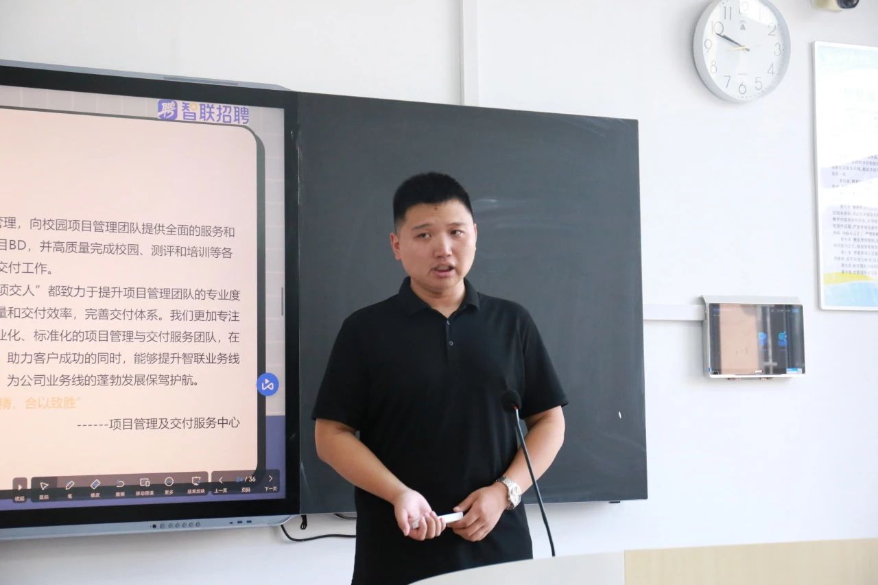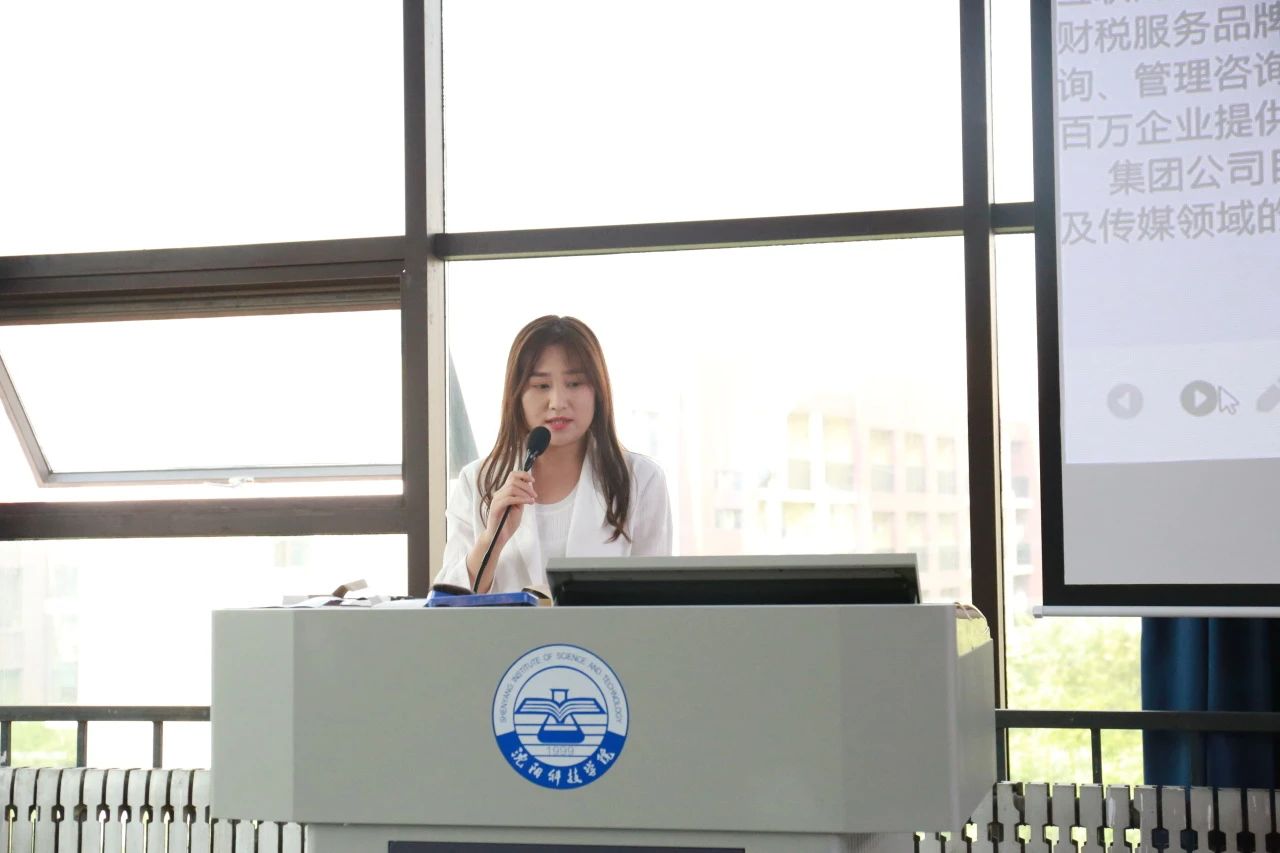 随后,校企双选会正式启动。受邀参会的一诺快记(辽宁)企业管理接团有限公司沈阳分公司、沈阳玖玖财税咨询有限公司、柯兰德(辽宁)税务师事务所有限公司、沈阳华清会计师事务所、沈阳鲸余财税咨询有限公司、辽宁荣正会计师事务所、大华会计师事务所、辽宁长信房地产土地评估有限公司、智联招聘、猿辅导、沈阳嘉镜传媒有限公司、新希望集团、沈阳视界树科技股份有限公司、北京锦森网络科技有限公司等14家企业代表进行了校园宣讲。详细地向学生们介绍了企业发展概况、经营产品与服务、岗位能力要求及企业发展规划等。宣讲师通过大量业界案例与合作项目,展现职场的晋升路径,激发了同学们的浓厚兴趣和期待。