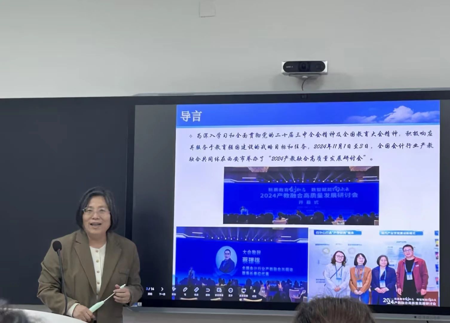 11 月 13 日,管理与传媒系会计学教研室举行了一场研讨会观摩及走访分享交流活动。赵杰老师代表参加会议及高校走访的四位教师,向教研室全体教师进行了详细汇报。