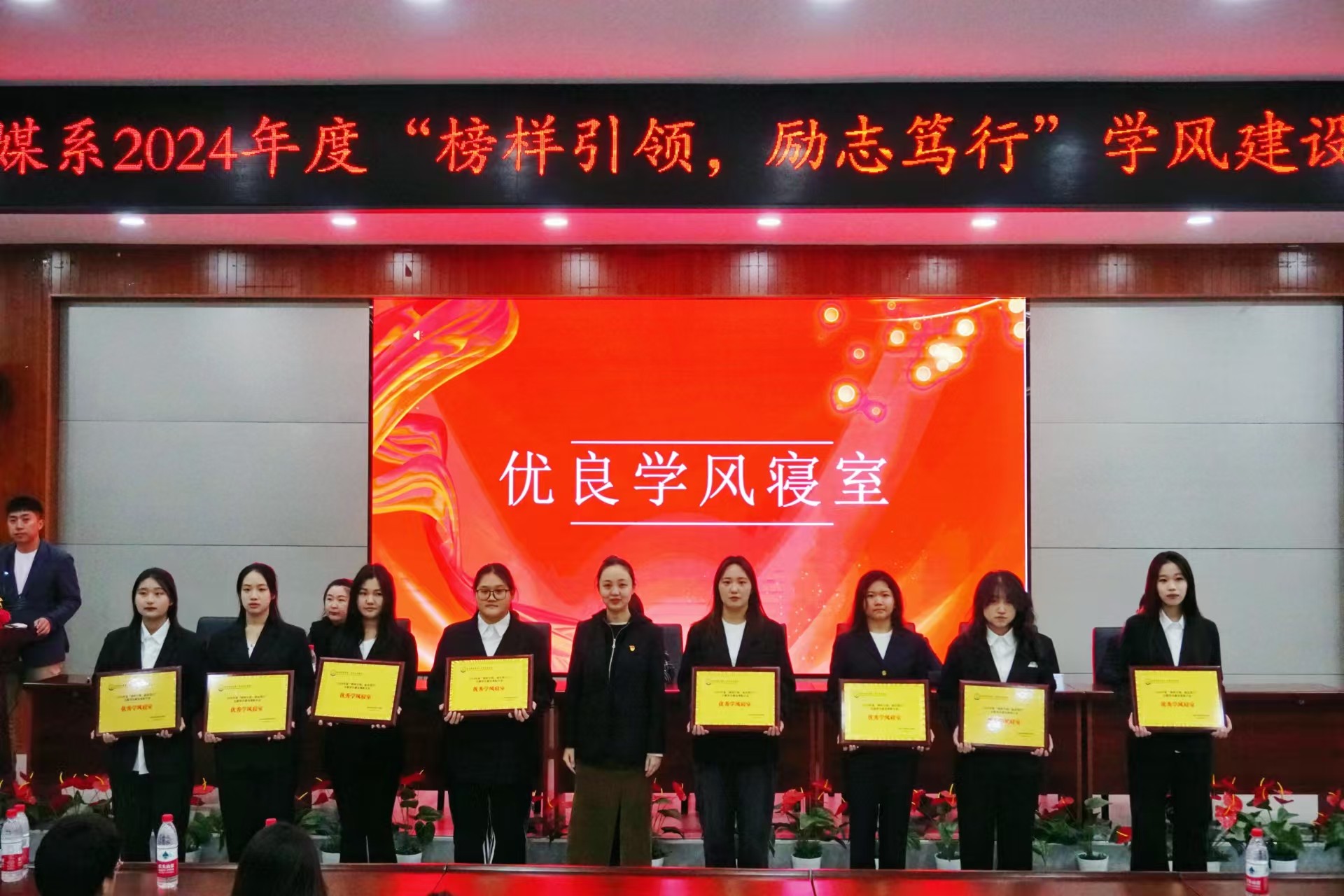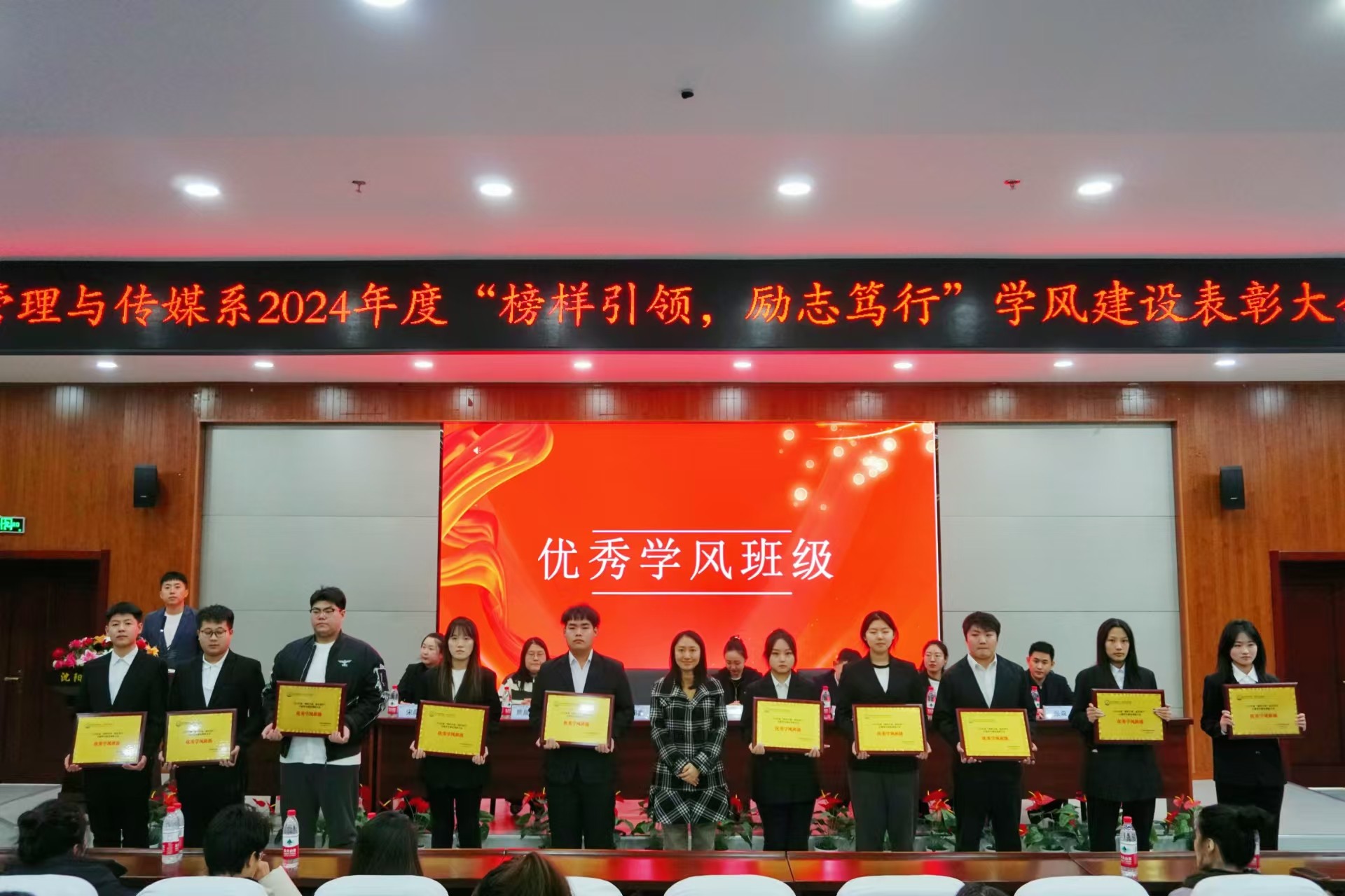 为全面贯彻党的教育方针,落实立德树人根本任务,进一步引领优良班风、学风建设,发挥榜样示范引领作用,激发全体学生创先争优的积极性,营造良好学风氛围。管理与传媒系于2024年12月16日开展2024年度“榜样引领,笃志笃行”主题学风建设表彰大会。管理与传媒系主任郑鑫,党总支副书记蒋明儒,系副主任贾晨露及系内各年级辅导员出席本次大会。大会由辅导员刘路达主持。