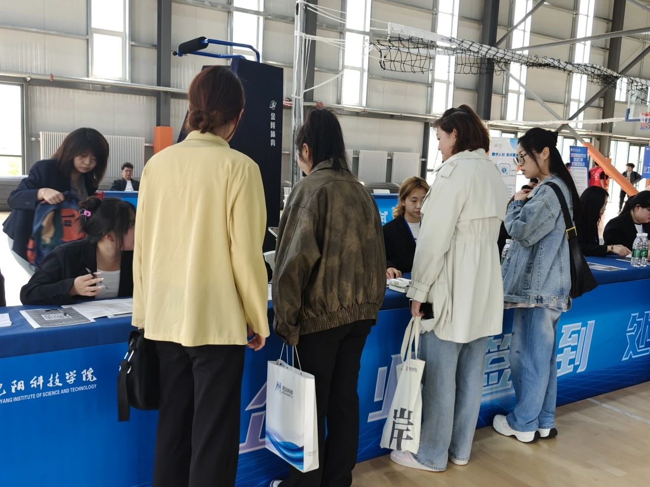 活动现场志愿者们热情地为前来招聘的企业工作人员和求职的毕业生提供签到与引导服务,帮助企业完成展位的最后准备工作,为毕业生解答关于招聘流程、岗位信息等疑问。通过此次志愿服务活动,不仅为毕业生和企业搭建了更加顺畅的沟通桥梁,也让志愿者们积累了实践经验,增强了服务社会的意识,助力学校营造积极助力学生就业的良好氛围。