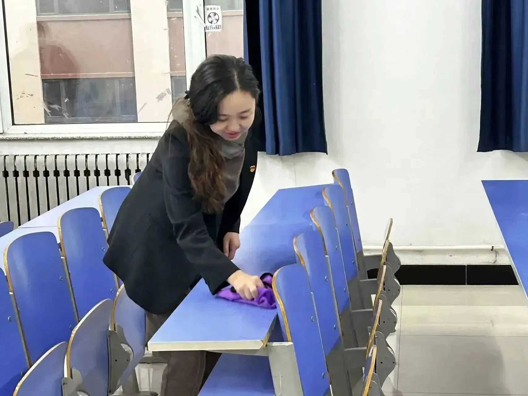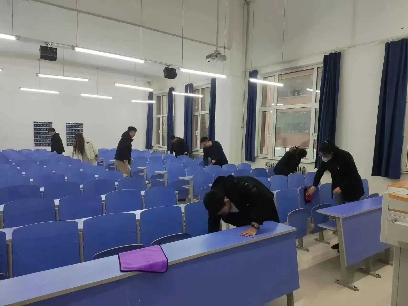 志愿服务过程中,党员志愿者们拿起笤帚、抹布等清洁工具,有秩序地进行清洁整理工作,对教室进行全方位清洁整理,不落下任何一个卫生死角,为广大同学营造了舒适、整洁的学习环境,充分展现党员干部不怕脏、不怕苦、不怕累的吃苦耐劳的精神品质,增强了党组织的凝聚力。