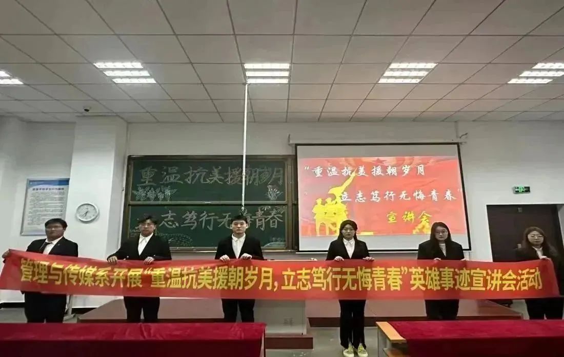 为贯彻落实习近平总书记关于“用好红色资源,传承好红色基因,把红色江山世世代代传下去”重要指示精神,践行抗美援朝精神,培养爱国情怀。3月5日下午5点,管理与传媒系党总支副书记蒋明儒及全体辅导员在第一教学楼133参加“重温抗美援朝岁月,立志笃行无悔青春”英雄事迹宣讲会。