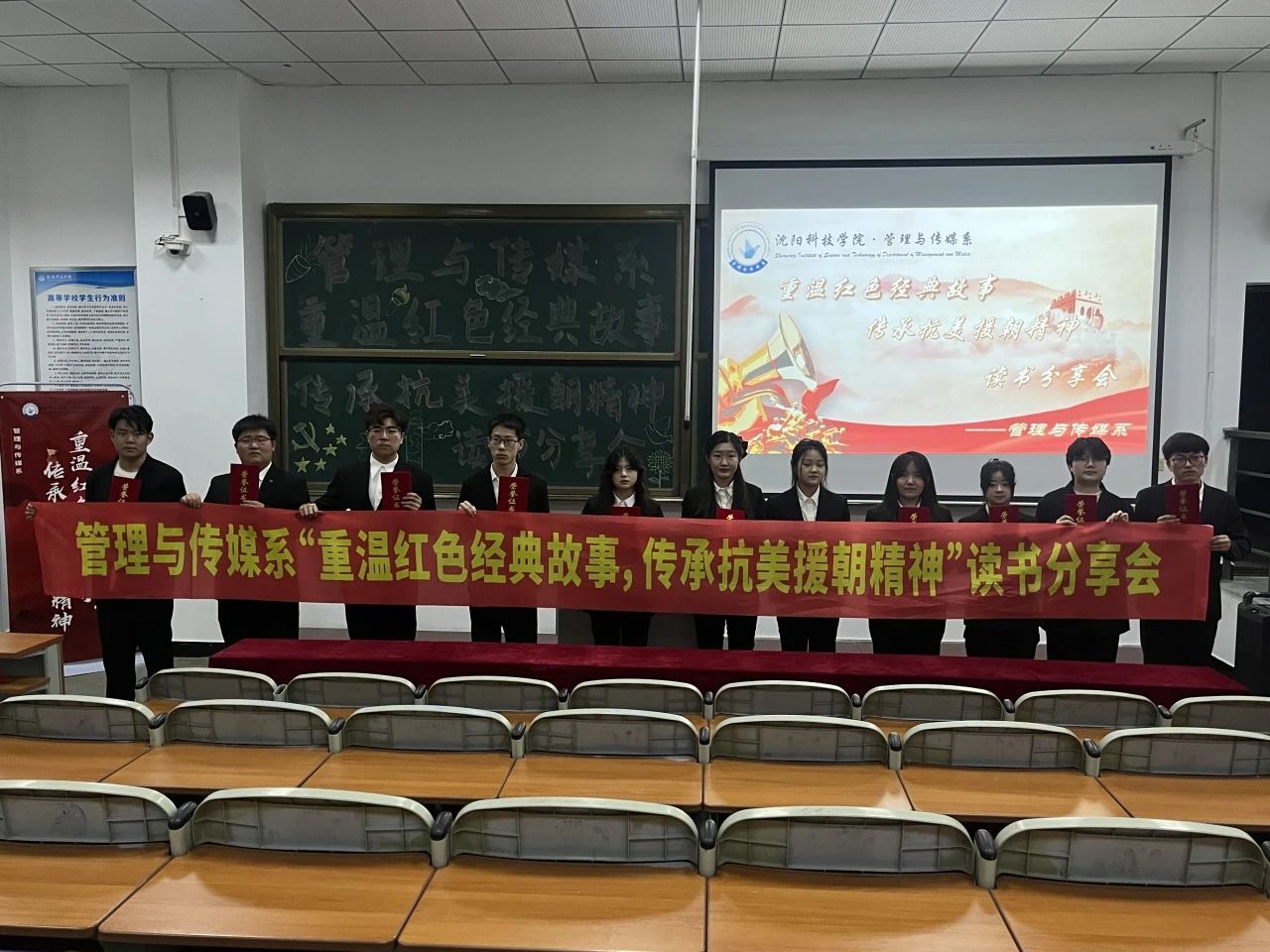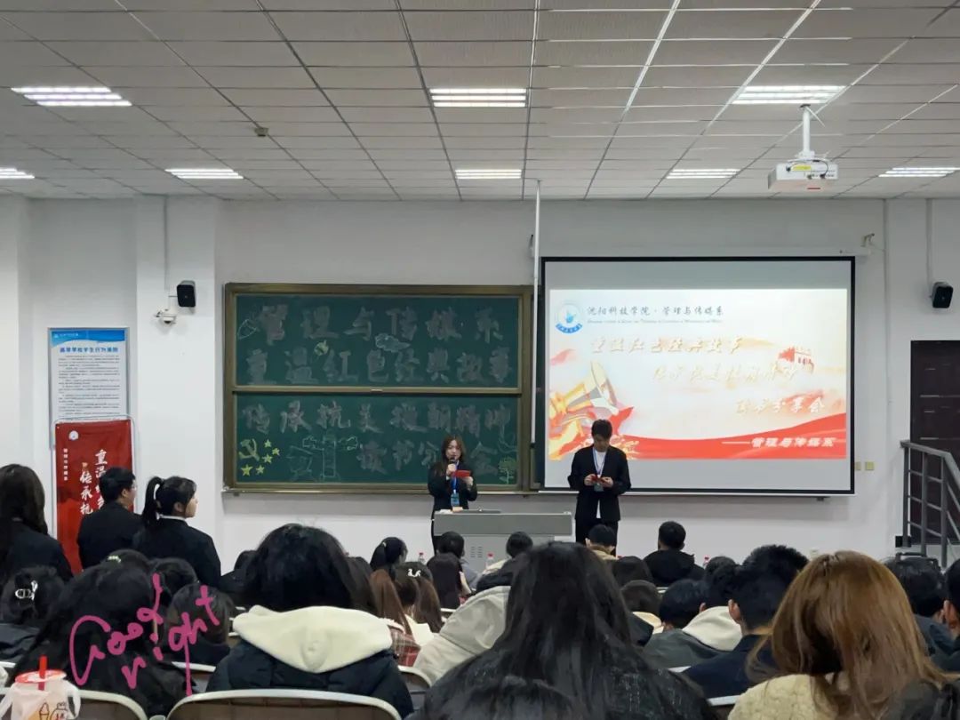 为深入贯彻落实学校党委下发《关于全面实施“传承红色基因、践行抗美援朝精神”特色思想政治工作体系的意见》,弘扬伟大的抗美援朝精神,加强新青年的爱国意识,培育优秀的新时代青年学子。管理与传媒系于近日在一教529开展“重温红色经典故事·传承抗美援朝精神”读书分享会。